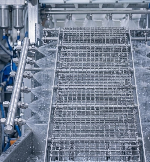 Limpieza uniforme y eficaz: su estructura abierta permite que el agua y los agentes de limpieza atraviesen la banda y lleguen a toda la superficie del producto, garantizando un lavado homogéneo en cada ciclo.